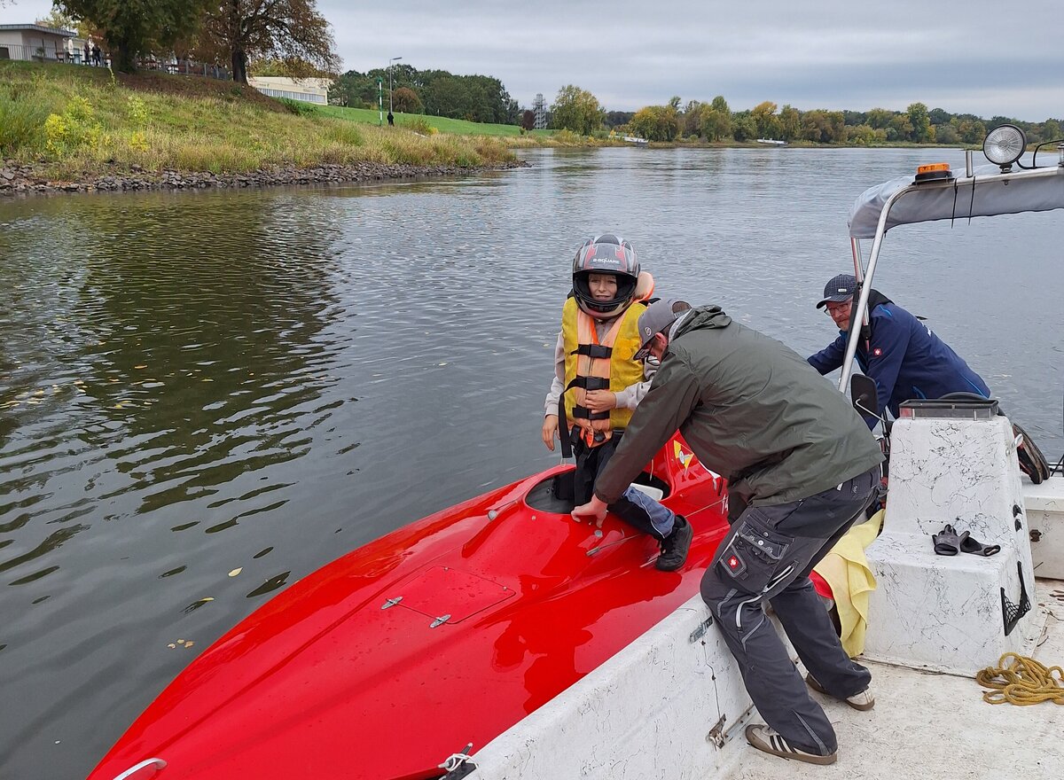 Am Samstag den 04.10.2025 gestalteten die Mitglieder des MBS - Elbe, die Rennbootfahrer aus Sachsen-Anhalt ihr jährliches “Bockwurstrennen”. Neben einigen Booten der OSY-Klasse nahmen auch die Neulinge Max Frieben (13) und Michel Holger Thousz (15) teil. Beide sind Einsteiger in die Rennbootszene und fahren in dem neuen GT 15 Boot, welches der MBC im letzten Jahr mit Hilfe des Landesverbandes und des DMYV e.V. aufgebaut hat. Beide Fahrer haben Spaß und entwickel Leidenschaft für den Rennbootsport.